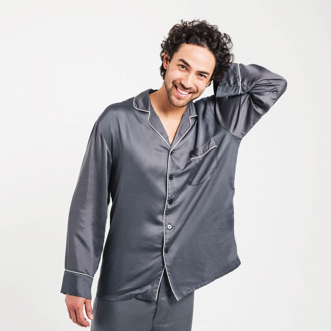 Outlet 👏 Ettitude men Sateen Long Sleeve PJ 👚 Shirt ⌛